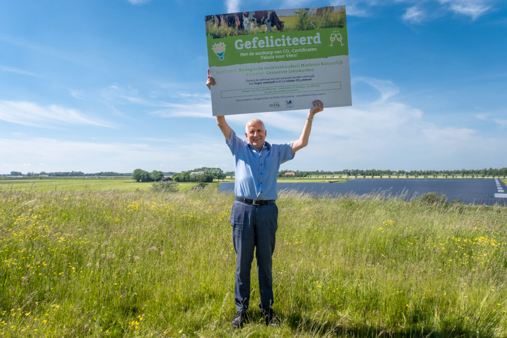 Medio 2021 kocht de Gemeente Leeuwarden CO2-certificaten van Friese veenweideboer Sjoerd Miedema. Eerder werden internationale CO2-certificaten gekocht door Leeuwarden. Maar nu is bewust de overstap naar het lokale project Valuta voor Veen in Friesland gemaakt. Dit is een win-win omdat het project gestimuleerd wordt en het geld terugvloeit naar de lokale omgeving en boeren. De aankoop is een prachtig voorbeeld van een regionale samenwerking met een brede positieve impact. Naast aan klimaatwinst draagt aankoop bijvoorbeeld ook bij aan het afremmen van bodemdaling en betere omstandigheden voor weidevogels. En dat betrouwbaar ‘om de hoek’, in de eigen regio.